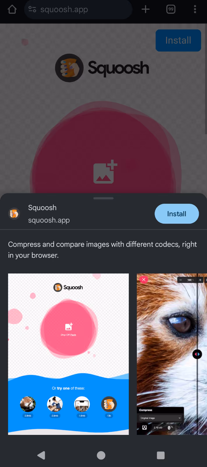 Przykładowe okienko instalacji Squoosha w Chrome na Androidzie.
